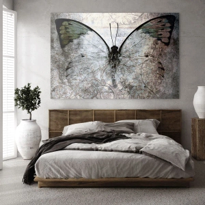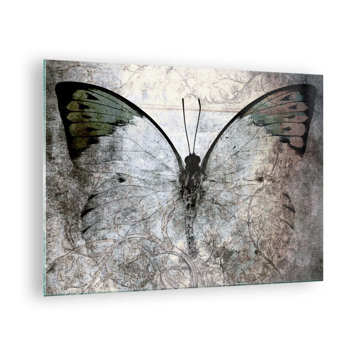 Tablou pe sticlă - Fluture abstract pe fundalul unui ornament vechi - 70x50cm - În decorul Art Nouveau - Decorațiune modernă pentru perete pentru living și dormitor ARTTOR