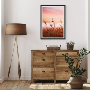 Poster în ramă neagră - Ierburi pe un cer colorat la apus - 50x70cm - Zmeuri, suflante, vânt - Decorațiune modernă pentru perete pentru living și dormitor ARTTOR