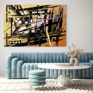 - Pictura prezintă o compoziție geometrică abstractă cu linii ascuțite. Un stil modern, perfect pentru un birou sau o sufragerie.