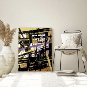 Pictura „Sharp Cut” este o pictură pe sticlă de 70x50 cm, creată de ARTTOR, care înfățișează o compoziție geometrică abstractă cu linii ascuțite în culori intense. În această pictură, diverse forme se ciocnesc, creând o compoziție dinamică și energică. Liniile ascuțite, tăiate, împletite cu nuanțe de auriu, negru, violet și galben, creează un spațiu plin de contraste care atrag atenția. Forma abstractă este expresivă, iar culorile sale vii adaugă energie întregului.