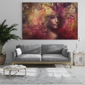 Un portret al unei femei înconjurate de culori dinamice și luminoase este o adevărată operă de artă care aduce o atmosferă unică interiorului. Compozițiile abstracte de culori interacționează cu detaliile feței, creând o armonie care încântă pe toată lumea.