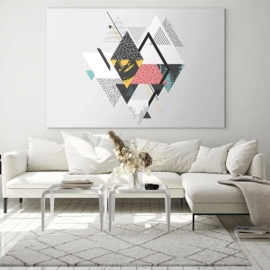 Tablou pe sticlă - Compoziție geometrică abstractă cu triunghiuri și romburi - 70x50cm - Variația triunghiului și a rombului - Decorațiune modernă pentru perete pentru living și dormitor ARTTOR