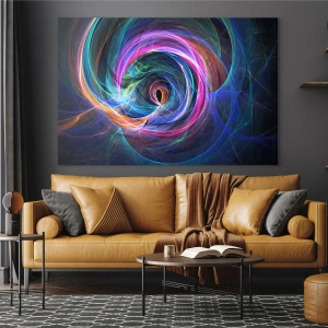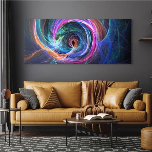 Tablou pe sticlă - O spirală abstractă în culori intense pe un fundal întunecat. - 70x50cm - Unde mă vei duce? - Decorațiune modernă pentru perete pentru living și dormitor ARTTOR