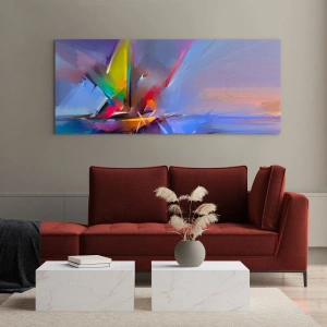 Tablou pe sticlă - Elice abstracte în culori vibrante pe un cer pastelat - 70x50cm - Iute ca o pasăre - Decorațiune modernă pentru perete pentru living și dormitor ARTTOR