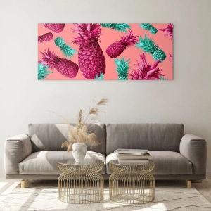 Tablou pe sticlă - Ananas colorat în nuanțe de roz și verde pe un fundal roz - 70x50cm - Libertatea e dulce - Decorațiune modernă pentru perete pentru living și dormitor ARTTOR