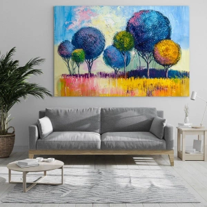 Alegeți un tablou care înfățișează copaci colorați pe fundalul unui peisaj abstract pentru a aduce armonie, energie și expresie artistică în interiorul dumneavoastră. Lăsați acest tablou să devină punctul central al casei sau biroului dumneavoastră.