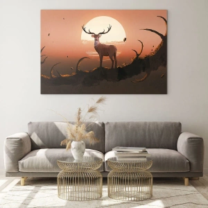 Investește într-un imprimeu care îți evidențiază pasiunea pentru natură și eleganță. Silueta unui cerb pe fundalul unei luni mari este o lucrare unică ce captivează prin armonia, misterul și expresia sa artistică.