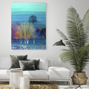 Tablou de perete - Peisaj periat - Peisaj colorat cu copaci pe un fundal albastru
