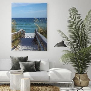 Tablou pe sticlă - Calea spre plajă cu vedere la mare - 70x50cm - În soare, în vânt - Decorațiune modernă pentru perete pentru living și dormitor ARTTOR