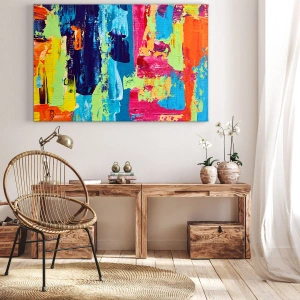 • O compoziție vibrantă, abstractă, plină de culori vibrante și forme dinamice. O decorațiune perfectă pentru interioarele moderne, introduce energie și stil original.