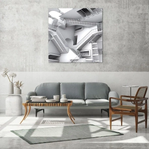 Tabloul pe sticlă este realizat din sticlă de 4 mm grosime. Marginile sticlei au o tăietură trapezoidală mată. Tabloul este sigur pentru utilizare și gata de agățat - are agățătoare metalice fixate pe spatele tabloului și distanțiere din spumă pentru a regla distanța uniformă a tabloului față de perete.
