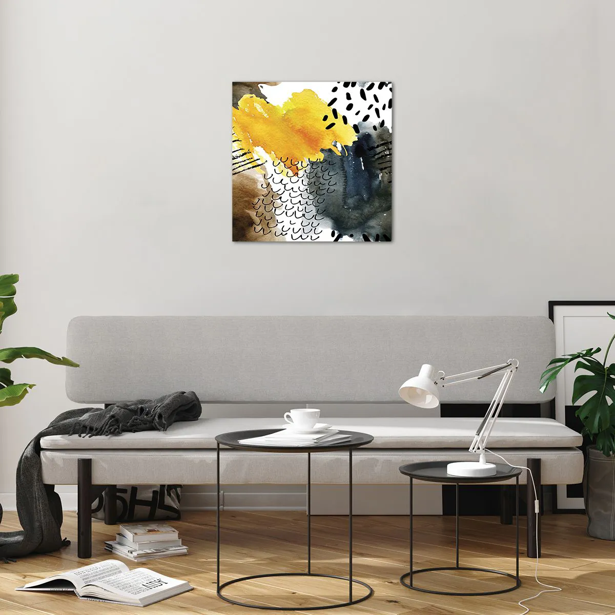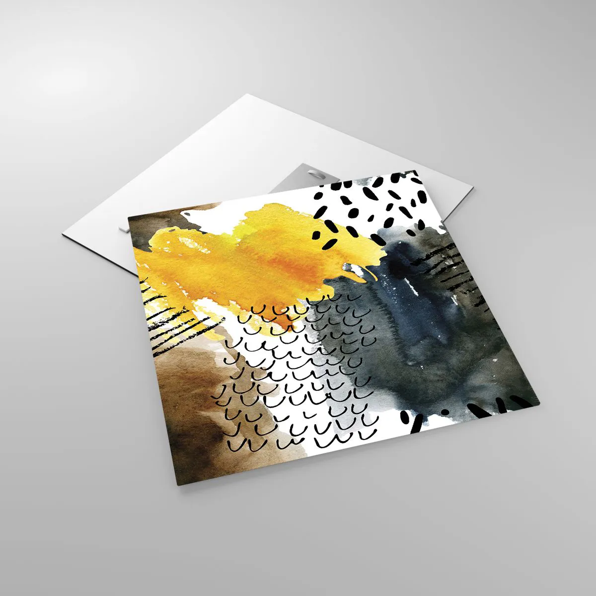 Tabloul pe sticlă este realizat din sticlă de 4 mm grosime. Marginile sticlei au o tăietură trapezoidală mată. Tabloul este sigur pentru utilizare și gata de agățat - are agățătoare metalice fixate pe spatele tabloului și distanțiere din spumă pentru a regla distanța uniformă a tabloului față de perete.