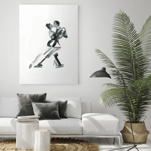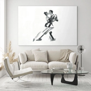 Tablou pe sticlă - Un cuplu dansând tango în acuarelă alb-negru - 70x50cm - Într-un ritm - Decorațiune modernă pentru perete pentru living și dormitor ARTTOR