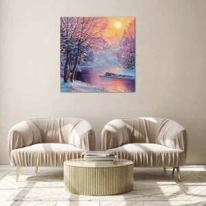 Tablou de perete - Culorile iernii - Peisaj de iarnă cu râu și apus de soare