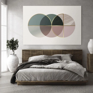 Tablou pe sticlă - Forme geometrice cu nuanțe de verde și roz pe un fundal deschis - 70x50cm - Roată cu roată… - Decorațiune modernă pentru perete pentru living și dormitor ARTTOR