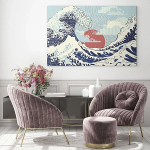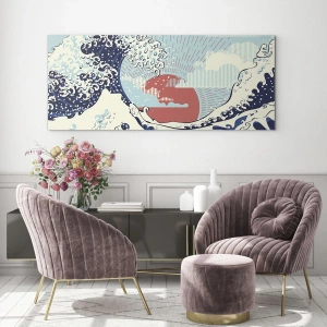 Tablou pe sticlă - Un val stilizat inspirat de arta japoneză - 70x50cm - Din inspirații japoneze - Decorațiune modernă pentru perete pentru living și dormitor ARTTOR