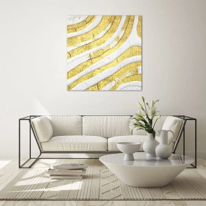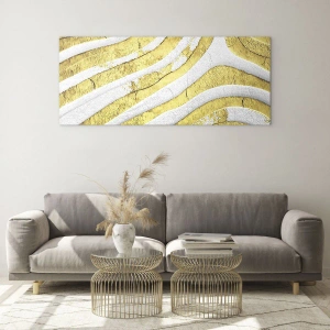 Tablou pe sticlă - Compoziția în alb și auriu - 100x40 cm