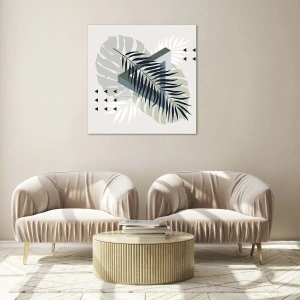 Tablou pe sticlă - O compoziție geometrică modernă cu frunze - 70x50cm - Natura și geometria - două ordine? - Decorațiune modernă pentru perete pentru living și dormitor ARTTOR
