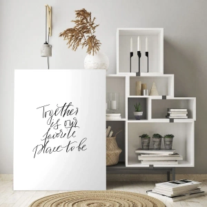 - Un tablou cu o inscripție caligrafică elegantă pe fundal alb. Designul său minimalist și tipografia subtilă fac din această decorațiune un accent elegant pentru orice interior. O alegere excelentă pentru cei care prețuiesc simplitatea și designul modern.