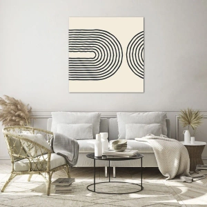 Tablou pe sticlă - pictură abstractă în alb și negru care înfățișează linii în formă de arc. - 70x50cm - În curând... - Decorațiune modernă pentru perete pentru living și dormitor ARTTOR
