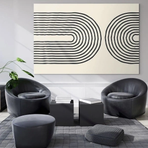 Pictură murală „Już zając...” - Pictură abstractă în alb-negru care înfățișează linii în formă de arc