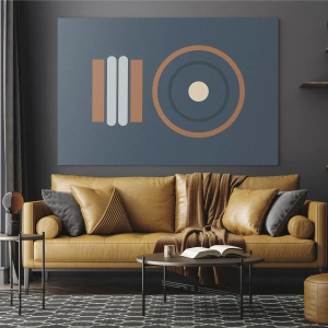 Tablou pe sticlă - Forme geometrice abstracte în culori estompate, cu cercuri și linii - 70x50cm - Esența problemei - Decorațiune modernă pentru perete pentru living și dormitor ARTTOR