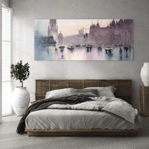Tablou pe sticlă - peisaj urban ploios - 70x50cm - Într-o ceață ploioasă - Decorațiune modernă pentru perete pentru living și dormitor ARTTOR