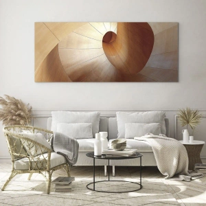 Tablou pe sticlă - Structură arhitecturală spiralată din lemn în culori calde - 70x50cm - Serpentină arhitecturală - Decorațiune modernă pentru perete pentru living și dormitor ARTTOR