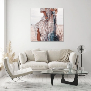Tablou pe sticlă - Hippie pe drum - 40x40 cm