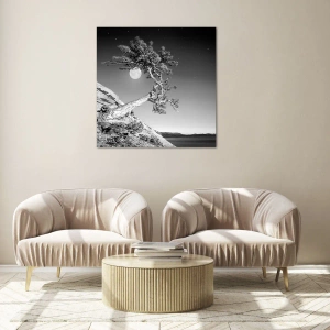 Tabloul pe sticlă este realizat din sticlă de 4 mm grosime. Marginile sticlei au o tăietură trapezoidală mată. Tabloul este sigur pentru utilizare și gata de agățat - are agățătoare metalice fixate pe spatele tabloului și distanțiere din spumă pentru a regla distanța uniformă a tabloului față de perete.