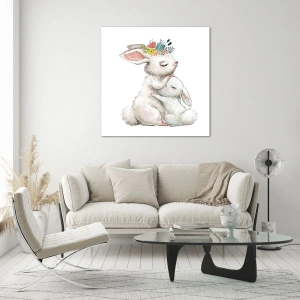 Tablou pe sticlă - Doi iepuri drăgălași în culori pastelate - 70x50cm - Ca la mama - Decorațiune modernă pentru perete pentru living și dormitor ARTTOR