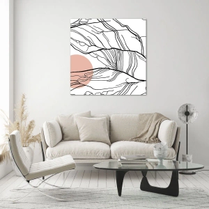 Motivul picturii se referă la forme organice găsite în natură – rădăcini, ramuri, straturi de pământ sau pante de munte văzute din perspectiva unei păsări. Datorită acestei interpretări, lucrarea poate fi percepută în multe feluri, ceea ce o face un element extrem de versatil de decorare a peretelui. Liniile și conturul joacă un rol cheie aici, creând profunzime și dinamică în ciuda paletei de culori limitate. Liniile negre contrastează cu fundalul alb și bejul cald, creând un întreg coerent și modern.