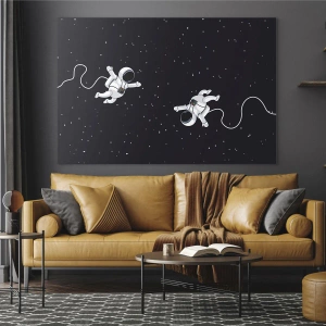 Tablou pe sticlă - Doi astronauți plutind în spațiu - 70x50cm - Dansul spațial - Decorațiune modernă pentru perete pentru living și dormitor ARTTOR