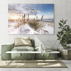 Pictură murală - Vânt dinspre mare - Pasăre zburând peste dune la apus