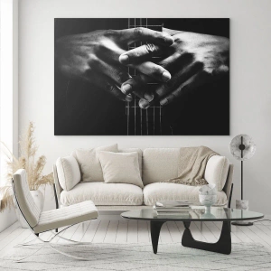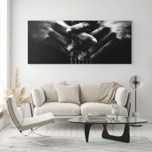 Tabloul pe sticlă este realizat din sticlă de 4 mm grosime. Marginile sticlei au o tăietură trapezoidală mată. Tabloul este sigur pentru utilizare și gata de agățat - are agățătoare metalice fixate pe spatele tabloului și distanțiere din spumă pentru a regla distanța uniformă a tabloului față de perete.