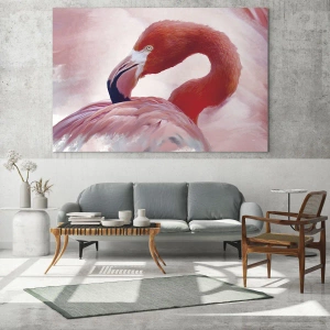 Motivul flamingo este perfect ca decor în spații moderne, cum ar fi livingul, dormitorul sau baia. Datorită temei și culorilor sale, aduce o notă de exotism, pace și eleganță interiorului. Această pictură se potrivește bine în interioarele scandinave, boho, minimaliste și moderniste. Culoarea sa roz poate fi un contrapunct minunat culorilor neutre de interior, adăugând viață și energie. Este o alegere perfectă pentru cei care doresc să creeze un spațiu plin de inspirație, menținând în același timp o estetică subtilă.