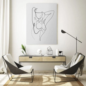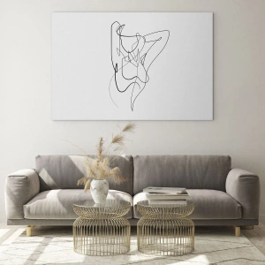- O siluetă feminină subtilă, surprinsă cu ajutorul artii liniare, prezentată ca o singură linie neagră pe un fundal alb. Forma sa minimalistă și elegantă aduce seninătate, modernitate și o notă de reflecție artistică interiorului.