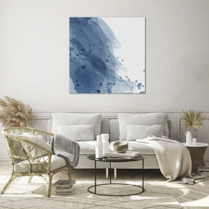 Tablou pe sticlă - Pată de acuarelă în nuanțe de albastru - 70x50cm - Tul albastru - Decorațiune modernă pentru perete pentru living și dormitor ARTTOR