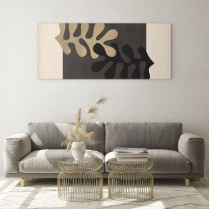 Tablou pe sticlă - Forme abstracte în negru și bej pe un fundal geometric - 70x50cm - Absență și completare - Decorațiune modernă pentru perete pentru living și dormitor ARTTOR