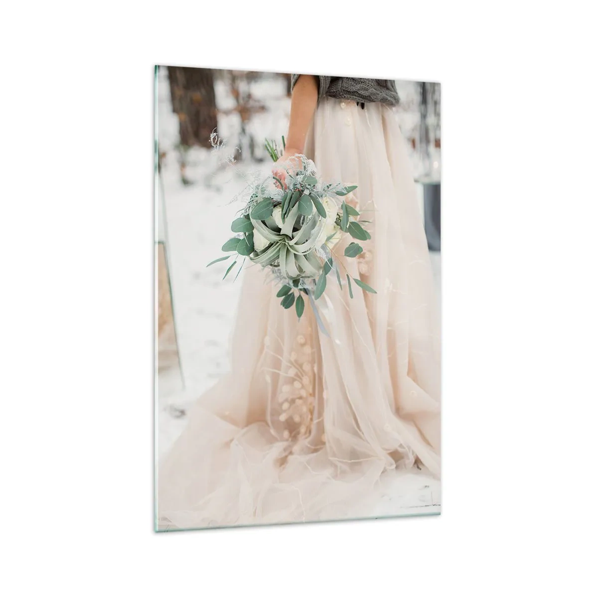 Tabloul pe sticlă este realizat din sticlă de 4 mm grosime. Marginile sticlei au o tăietură trapezoidală mată. Tabloul este sigur pentru utilizare și gata de agățat - are agățătoare metalice fixate pe spatele tabloului și distanțiere din spumă pentru a regla distanța uniformă a tabloului față de perete.