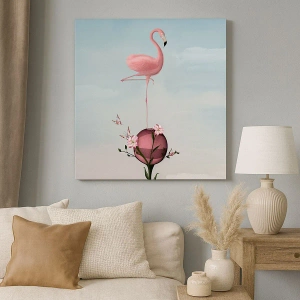 Tabloul „Flamingo roz echilibrându-se pe o minge de flori” este o operă artistică ce aduce subtilitate și eleganță interiorului. Înfățișează un flamingo roz echilibrându-se pe o minge decorată cu flori delicate. Această compoziție, decorată în culori pastelate, combină motive naturale cu o expresie artistică suprarealistă. Fundalul albastru accentuează și mai mult armonia și ușurința întregii lucrări.