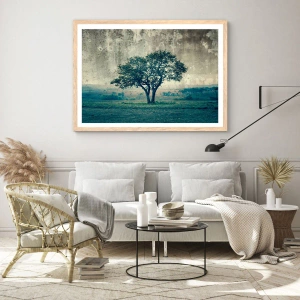 Poster în ramă de stejar deschis - Un măr pe o pajiște albastră? - 91x61 cm