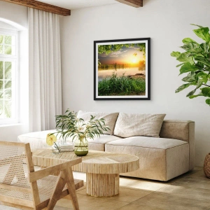Poster în ramă neagră - Peisaj într-un cadru verde - 30x30 cm