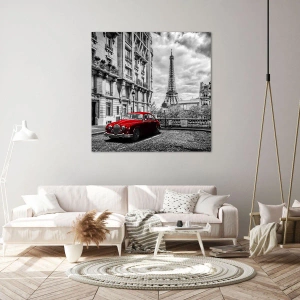 - Acest tablou înfățișează o mașină roșie pe fundalul Turnului Eiffel, în alb și negru. O piesă decorativă remarcabilă care combină stilul clasic cu cel modern.