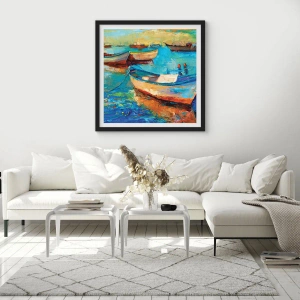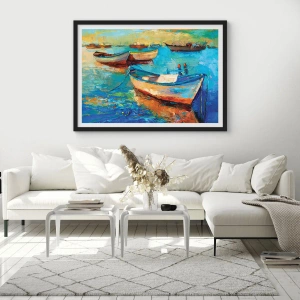 - Acest poster în stil impresionist înfățișează bărci colorate pe apă. Perfect pentru interioare inspirate de natură, se potrivește de minune într-un living sau birou. Împreună cu o ramă neagră, oferă o notă elegantă.