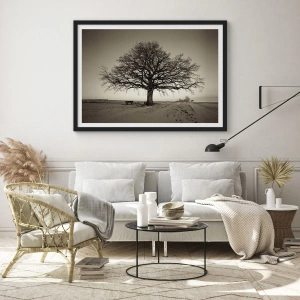 - Acest poster în tonuri sepia înfățișează un copac solitar într-un peisaj gol. Perfect pentru interioare clasice sau minimaliste, este disponibil cu o ramă neagră elegantă care îi sporește caracterul unic.