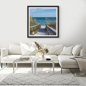 Poster în ramă neagră - Intrarea pe plajă cu vedere la mare - 50x70cm - În soare, în vânt - Decorațiune modernă pentru perete pentru living și dormitor ARTTOR