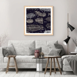 Poster în ramă de stejar deschis - Dantelă cu pene - 50x70 cm