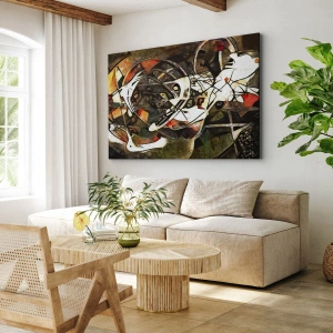 Tablou pe pânză Canvas - Abstracție expresivă în tonuri întunecate cu linii dinamice. - 70x50cm - Auziți mișcarea? - Decorațiune modernă pentru perete pentru living și dormitor ARTTOR