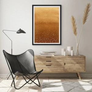 Poster în ramă neagră - Gradient auriu cu elemente strălucitoare minuscule - 50x70cm - Nașterea luminii - Decorațiune modernă pentru perete pentru living și dormitor ARTTOR